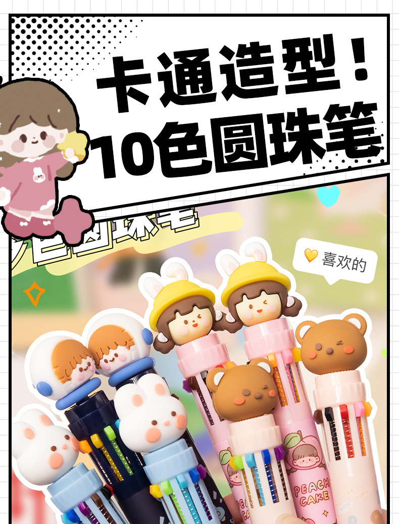 Primary school students color-in-one color multi-color ballpoint pen special multi-functional ten-color hand account pen 8 class press type